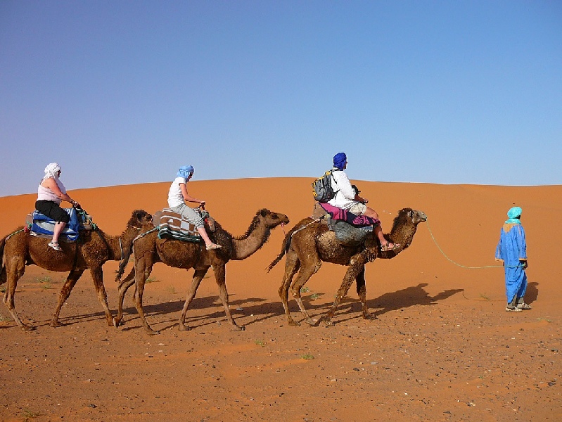 Départ après petit déjeuner en direction de l’Erg Chebbi et les grandes dunes de Merzouga, arrivé à la petite ville de Rissani la capitale de Tafilalet pays des dattes, des jardins de palmeraie et de l'artisanat.