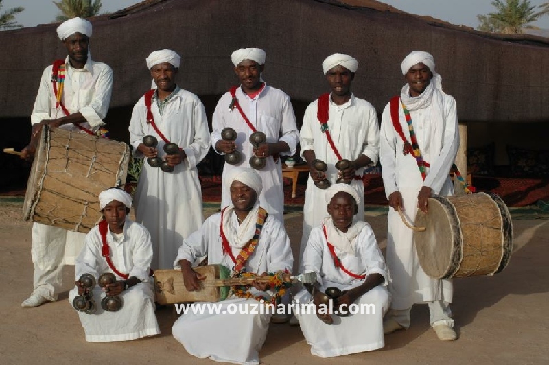 Souris son instrument de conquête, nombreux nomades, d'autres enracinés dans leurs terres ancestrales. Paradis Rimal Ouzina, plein de valeurs humaines, où la tradition est quotidienne, où le grand air conquiert l'âme, le désert, le silence, l'immobilité, les sons du vent, les dunes, le sable chaud et l'immensité des horizons à vos pieds ... . Chaudrons allumés plaisir, thé palais mou.