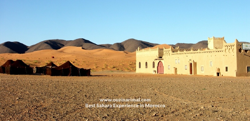 Ouzina Rimal : hôtel du désert près de Merzouga et activités dans le désert du Sahara + camp d'Ouzina