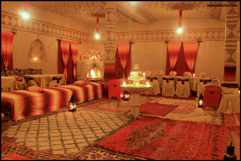 Cuisine Ouzina Rimal :Un séjour n'est pas réussi sans une bonne cuisine, élaborée à partir de produits frais et à votre demande nous proposons toute une gamme de plats Marocains: Tajine, couscous, brochettes, méchoui, salades, pâtisseries Marocaines…etc